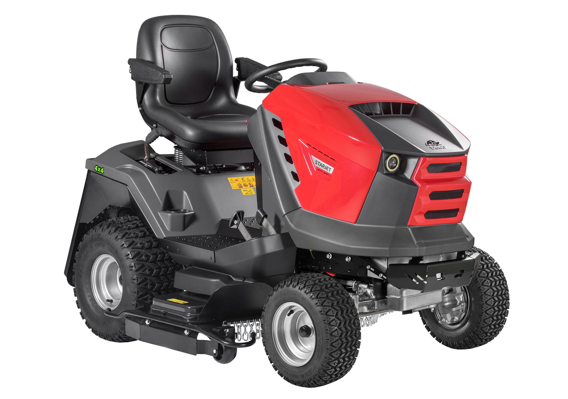 Díky zvýšené poptávce po cenově dostupnějším stroji, který by zvládl sekání trávy i ve svažitějším terénu, jsme se rozhodli uvést na trh model s pohonem 4×4 vycházející z klasického Starjetu P4. Tento traktor využívá stejného profesionálního pohonu jako naše zbývající traktory i komunální mulčery, čímž jasně deklasuje veškerou současnou konkurenci. Požádejte svého dealera o ukázku stroje v terénu!