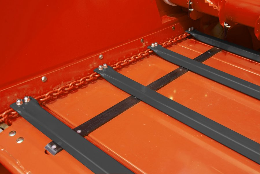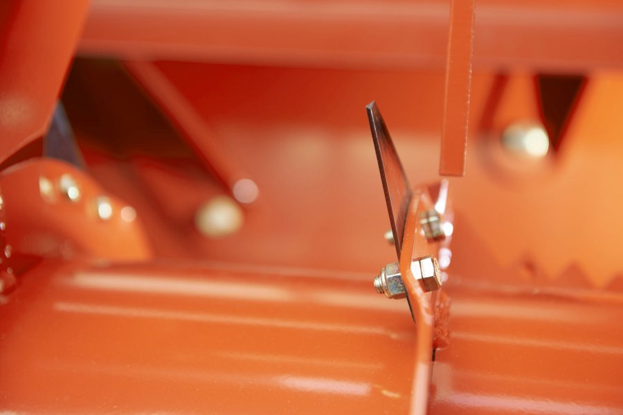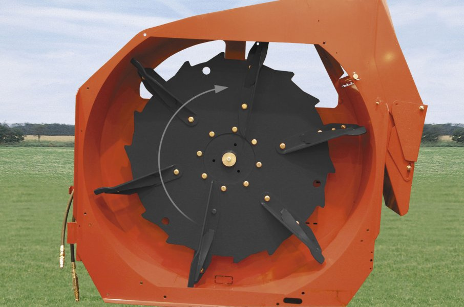 Odmítací buben s řezacími noži a dávkovacími hřebeny pro rovnoměrnější řez.