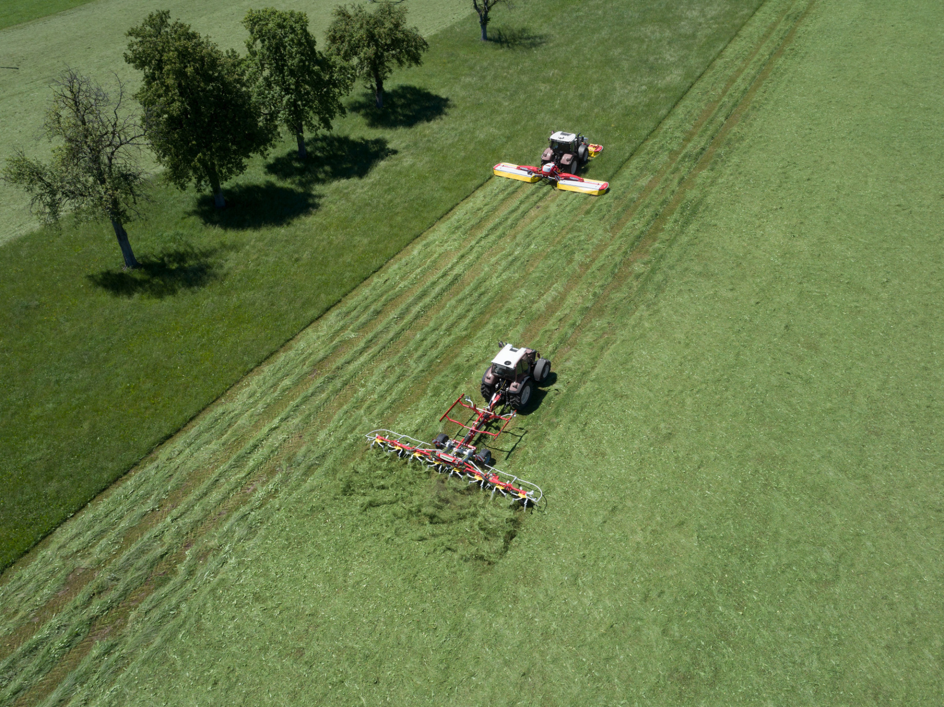 Dva pravé stranové rotory lze hydraulicky vykývnout o 15°. Eliminace vyhazování píce mimo pozemek. Nastavení rotorů pomocí hydrauliky při krajovém obracení je ve volitelné výbavě.